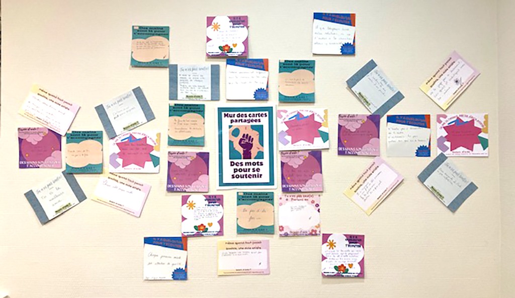 Les productions ont été rassemblées pour créer un “mur des cartes partagées”, illustrant la richesse des échanges et la force du collectif. Ce mur symbolise l’importance des mots dans le processus de rétablissement et le rôle essentiel du soutien mutuel.